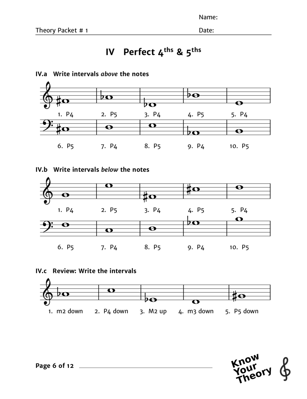 Theory Worksheets Packet #1 - Intervals 2nds through 5ths